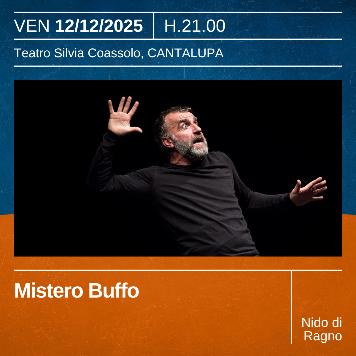 Mistero Buffo, celebre fabulazione di Dario Fo, torna in scena con Ugo Dighero. L’attore genovese interpreta due brani storici – Il primo miracolo di Gesù bambino e La parpaja topola – restituendo la forza comica, poetica e satirica di un capolavoro che ha reso Fo celebre nel mondo. Un omaggio al Nobel che intreccia grammelot, improvvisazione e tradizione popolare.