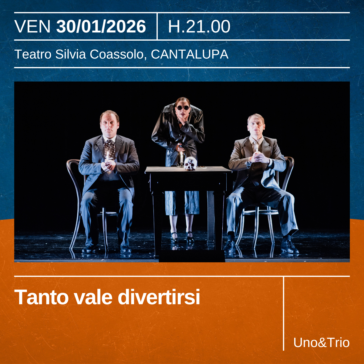 Su un palco pronto per “Amleto”, due attori e un misterioso terzo danno vita a una messinscena comica e surreale, tra equivoci, kabarett e umorismo yiddish. Ma il tempo stringe, e l’ombra della tragedia incombe. Ispirato a fatti accaduti nel campo di Westerbork durante la seconda guerra mondiale, lo spettacolo è un omaggio alla comicità del ’900: risate fragili, in fuga da un destino segnato.