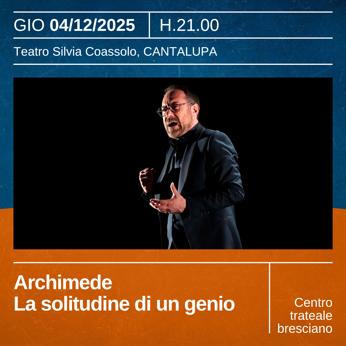 212 a.C., Siracusa assediata: un legionario entra nella casa di Archimede pronto a ucciderlo. In un ultimo soliloquio il grande matematico ripercorre la sua vita, segnata da solitudine e genialità, tra scoperte rivoluzionarie e incomprensioni. Tra leggende e verità prende forma il ritratto di un uomo che, con scienza e visione, cercò giustizia e lasciò un’eredità immortale.