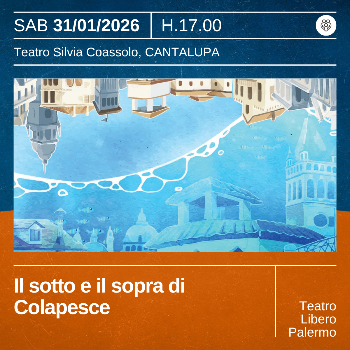 La leggenda siciliana di Colapesce, giovane nuotatore, racconta due mondi: quello misterioso degli abissi marini e quello frenetico degli uomini. Diffusa in tutto il Mediterraneo e cantata da poeti arabi e trovatori medievali, la storia è ricca di sentimenti forti e fiducia nelle nuove generazioni. Lo spettacolo mira a condividere questa favola con i giovani spettatori, rendendoli protagonisti.