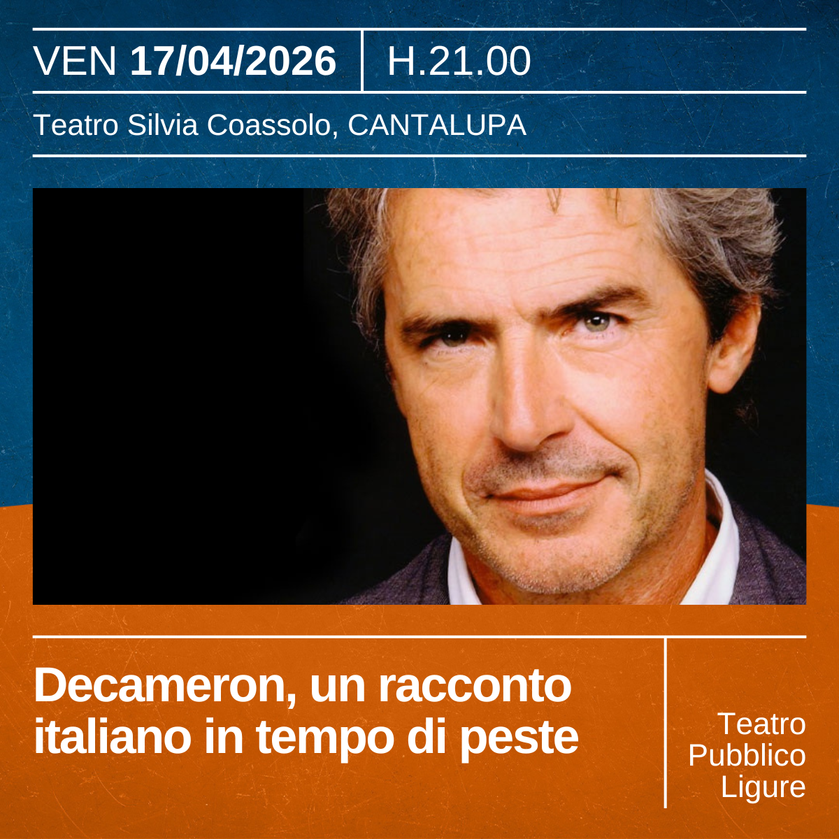 Decameron, un racconto italiano in tempo di peste, con Tullio Solenghi, restituisce al pubblico la lingua originale di Boccaccio resa accessibile e viva. Uno spettacolo raffinato e divertente che mantiene la contemporaneità dei cento racconti, narrando con ironia e varietà storie di re, contadini e operai, per riflettere sul mondo e sull’umana complessità.